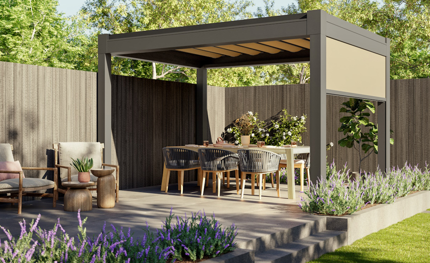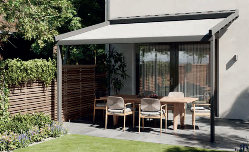 SL -1190 Pergola zonwering met zip-geleiding. Lage muurbelasting en zeer windvast